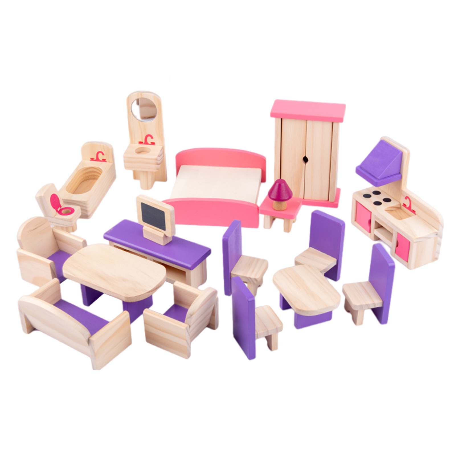 Megawheels Wooden Dollhouse Furniture Set Cute Doll House Furnishings Mini Doll House Accessories With Kitchen Living Room Bedroom Bathroom Tv Idea For Girls Walmart Com