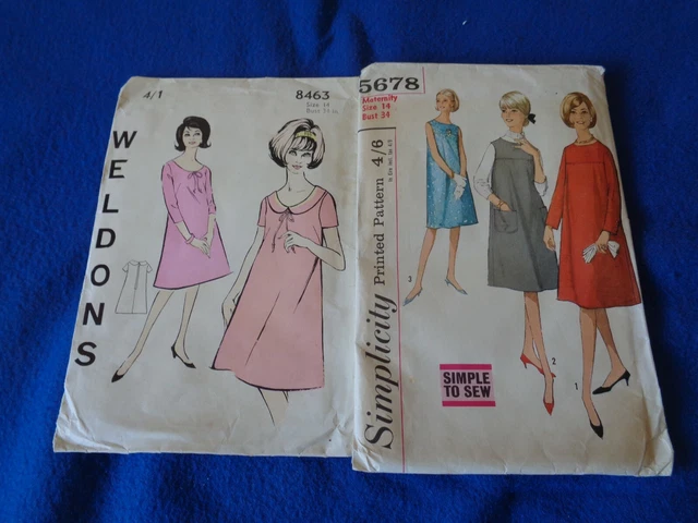 2 Vintage Sewing Patterns Maternity Dresses Size 14 Simplicity Weldons 4 99 Picclick Uk